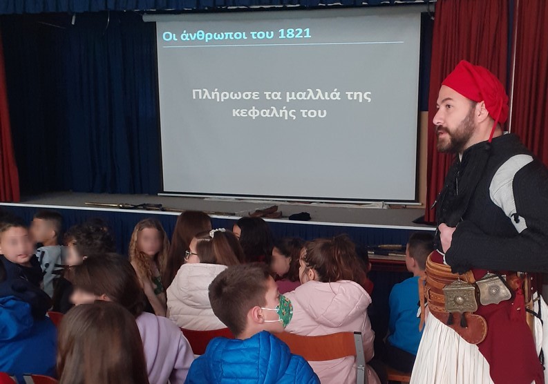 Την Δευτέρα στις 13-04-2023 ήρθε στο σχολείο μας ο κ. Περγαντής και μας παρουσίασε τις παραδοσιακές στολές του 1821.