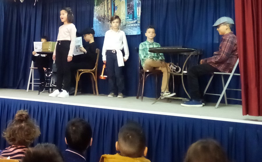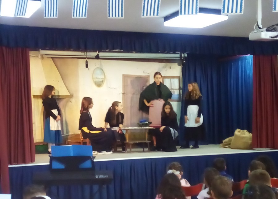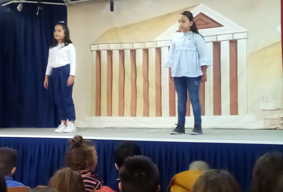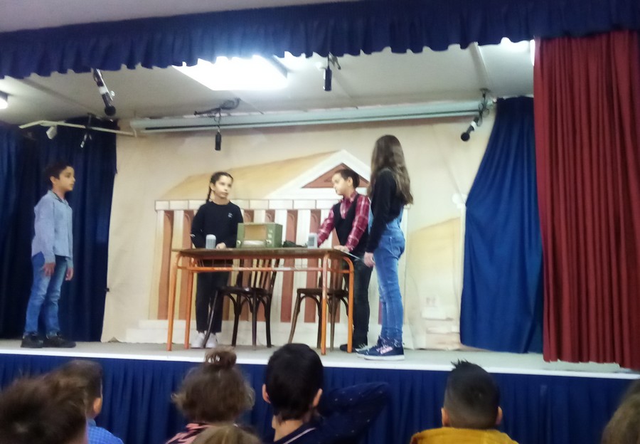 Οι μαθητές και οι μαθήτριες του τμήματος Δ1 ζωντάνεψαν, μέσα από τα θεατρικά δρώμενα, στιγμιότυπα από την καθημερινή ζωή κατά τη διάρκεια της δικτατορίας και τα γεγονότα που οδήγησαν στην εξέγερση των φοιτητών του Πολυτεχνείου.Το θεατρικό έργο: « Καφενείο Η Ελλάς » παρουσιάστηκε από τους μαθητές και τις μαθήτριες του Δ2 τμήματος με ιδιαίτερο παραστατικό τρόπο. Μικροί και μεγάλοι παρακολουθήσαμε με αμείωτο ενδιαφέρον την παράσταση, καθώς οι μικροί μας ηθοποιοί μας έκαναν να προβληματιστούμε, να γελάσουμε αλλά και να συγκινηθούμε. Μας έδειξαν ότι πρέπει να παλεύεις πάντα για την ελευθερία και για τη δημοκρατία με κάθε κόστος. Τους αξίζουν θερμά συγχαρητήρια.