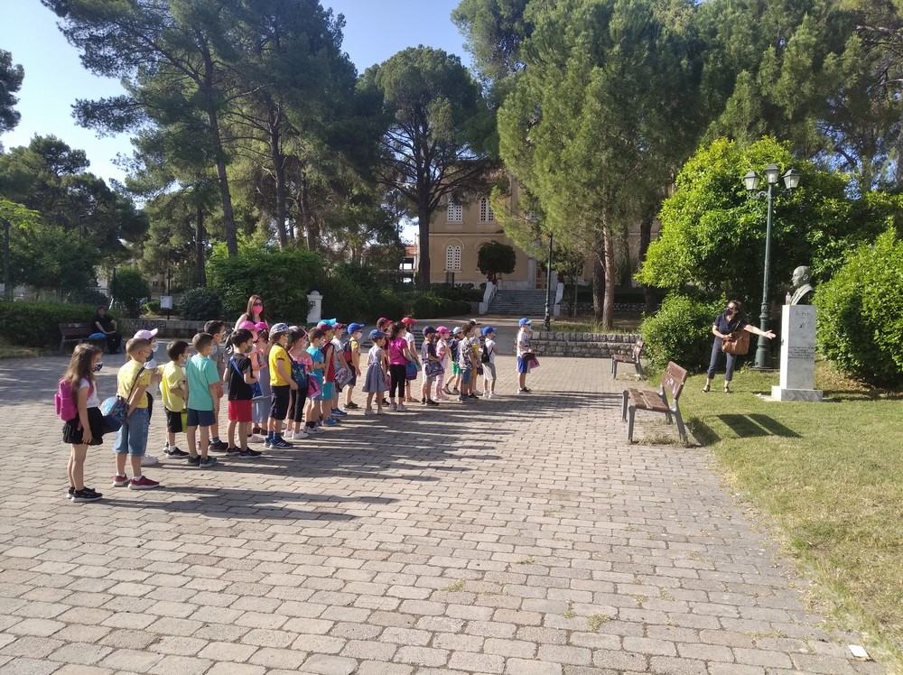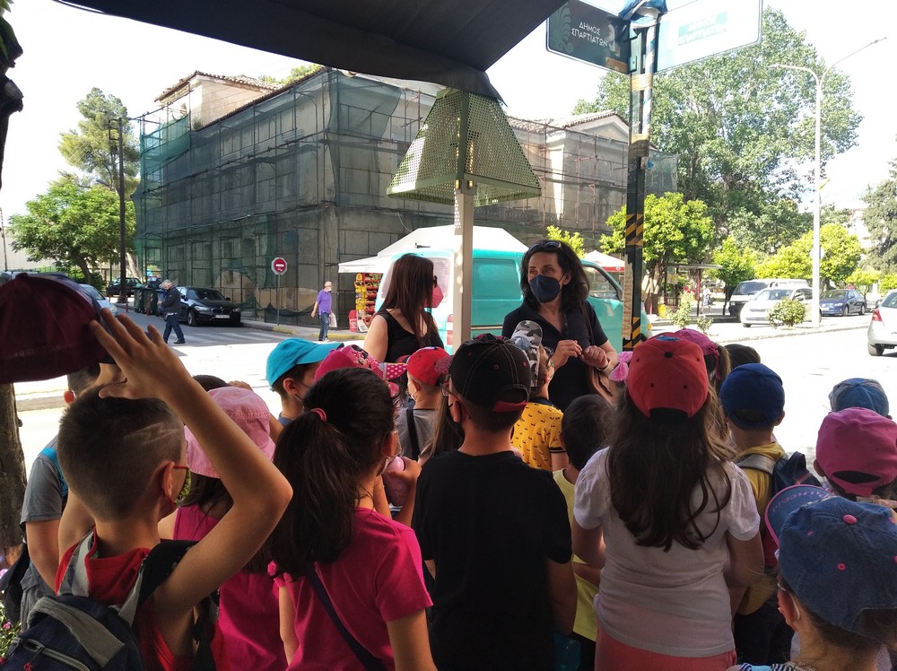 Τα παιδιά περιηγήθηκαν στις κοντινές οδούς, εντόπισαν πινακίδες καταστημάτων, γραφείων, υπηρεσιών, ιατρείων. Είδαν το πάρκο και την εκκλησία της ενορίας μας, προτομές, αγάλματα, το κοντινό Μουσείο: "Αστικού & Λαϊκού Βίου", τη Δημόσια Κεντρική Βιβλιοθήκη της πόλης μας, το Δικαστικό Μέγαρο, εντόπισαν και σχολίασαν πινακίδες της τροχαίας (Πληροφοριακές - Αναγγελίας Κινδύνου - Ρυθμιστικές) και ασκήθηκαν στον σωστό και ασφαλή τρόπο κυκλοφορίας τους, ως πεζοί, στους δρόμους και τα πεζοδρόμια.