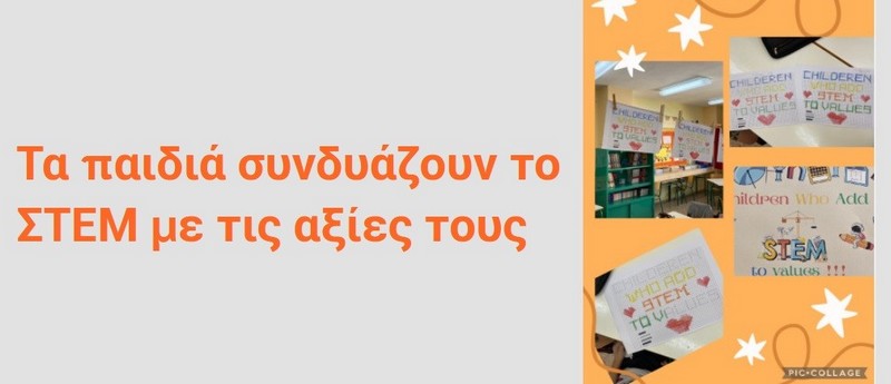 - Τα παιδιά συνδυάζουν το ΣΤΕΜ με τις αξίες τους - Οι μαθητές/τριες του Δ1 τμήματος μαθαίνουν μέσα από παιγνιώδη τρόπο την κωδικοποίηση συνδυάζοντας τα χρώματα βασισμένα σε συγκέκριμένο χρωματικό κώδικα. Οι μισοί μαθητές/τριες δημιουργούν τον κώδικα και οι άλλοι/ες μισοί αποκωδικοποιούν και χρωματίζουν το μήνυμα με βάση τον κώδικα. Περιγραφή: https://codeweek.eu/view/618256/ta-paidia-sindiazoyn-to-stem-me-tis-aksies-toys