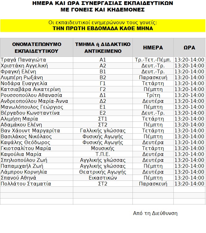 Από την Τρίτη 14-09-2021 το σχολείο θα λειτουργήσει με πλήρες πρόγραμμα: Πρωινή ζώνη (07:00΄ - 08:00΄ ), Υποχρεωτική ζώνη (08:15΄ - 13:15΄ ), Ολοήμερο ( 13:25΄ - 16:00΄ ).