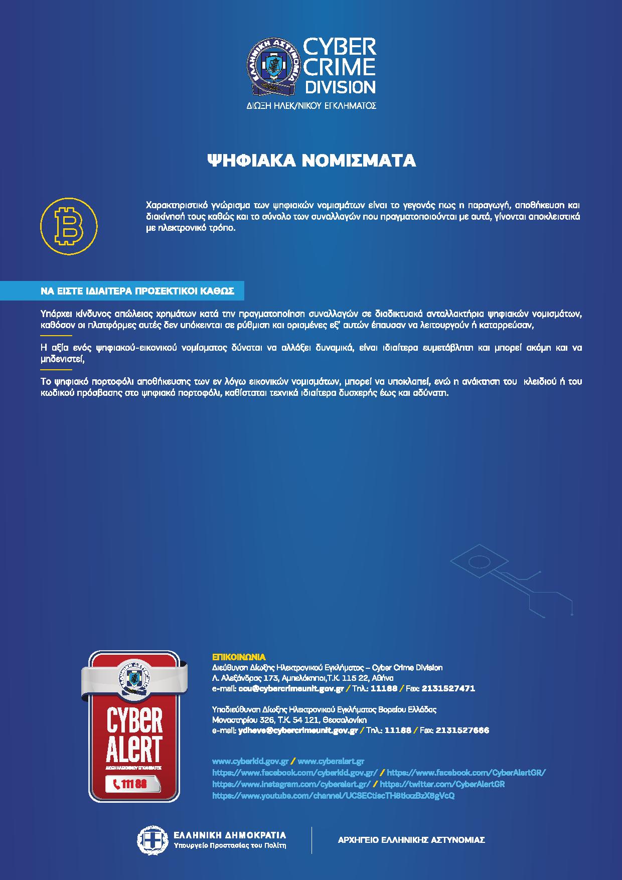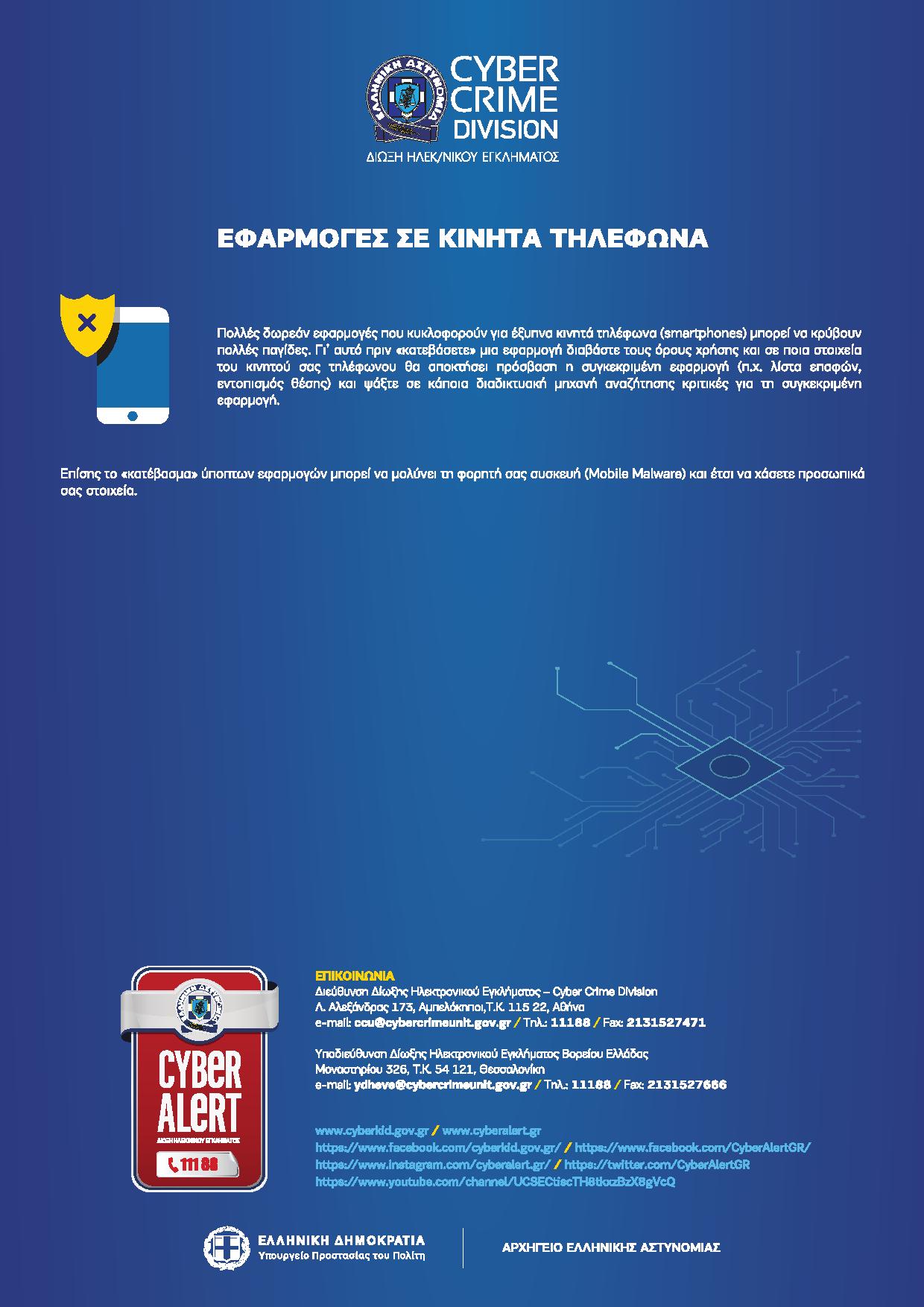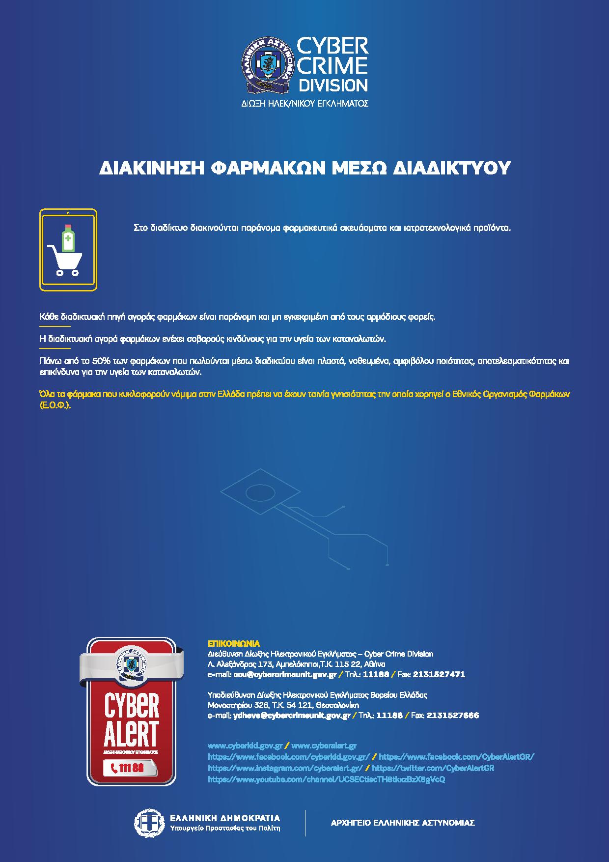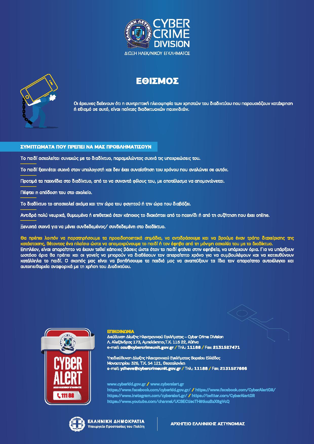 Ενημερωτικό υλικό της Διεύθυνσης Δίωξης Ηλεκτρονικού Εγκλήματος του Υπουργείου Προστασίας του Πολίτη σχετικά με την ασφαλή πλοήγηση στο διαδίκτυο.